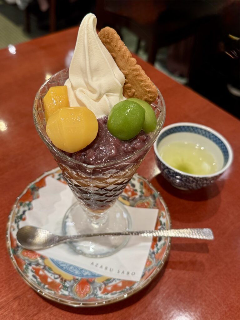 という事で、普段着でもサクッと入れる品川にある和カフェ〝麻布茶房〟にて、パフェデザートセットの夕飯となりました🌰