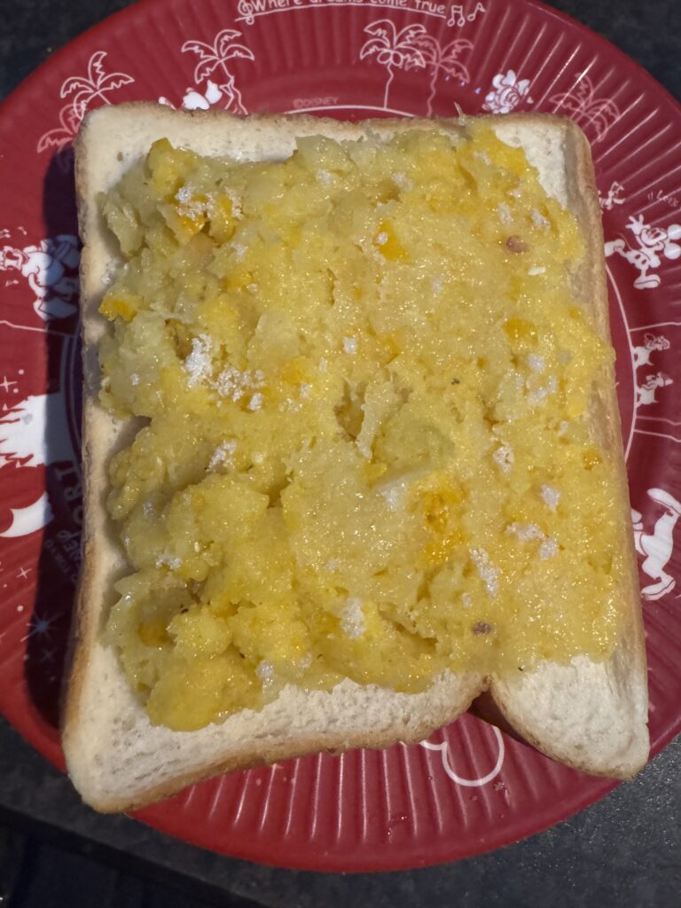 朝食には、パンにぬって‥と言うよりのせて💦しかもてんこ盛り💦