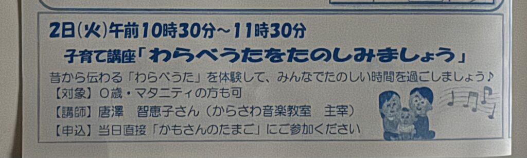 ‥話がちとそれましたが、わらべうた講座では、子育てでお役に立ちそうなお話(実体験)を、ひとつふたつ、取り入れるようにしています