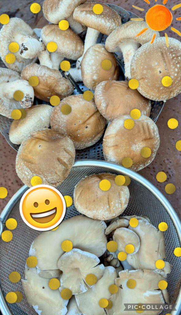 椎茸とマイタケをベランダに干した