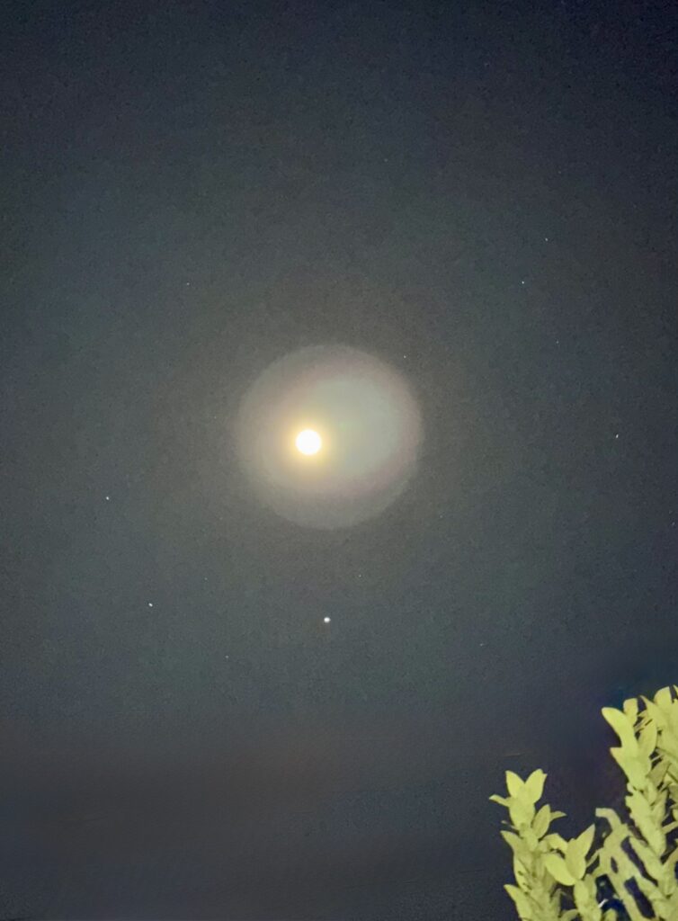 月の周りの輪っか(月暈/つきがさ)がこんなにはっきり眩しく見たことは初めてかも?