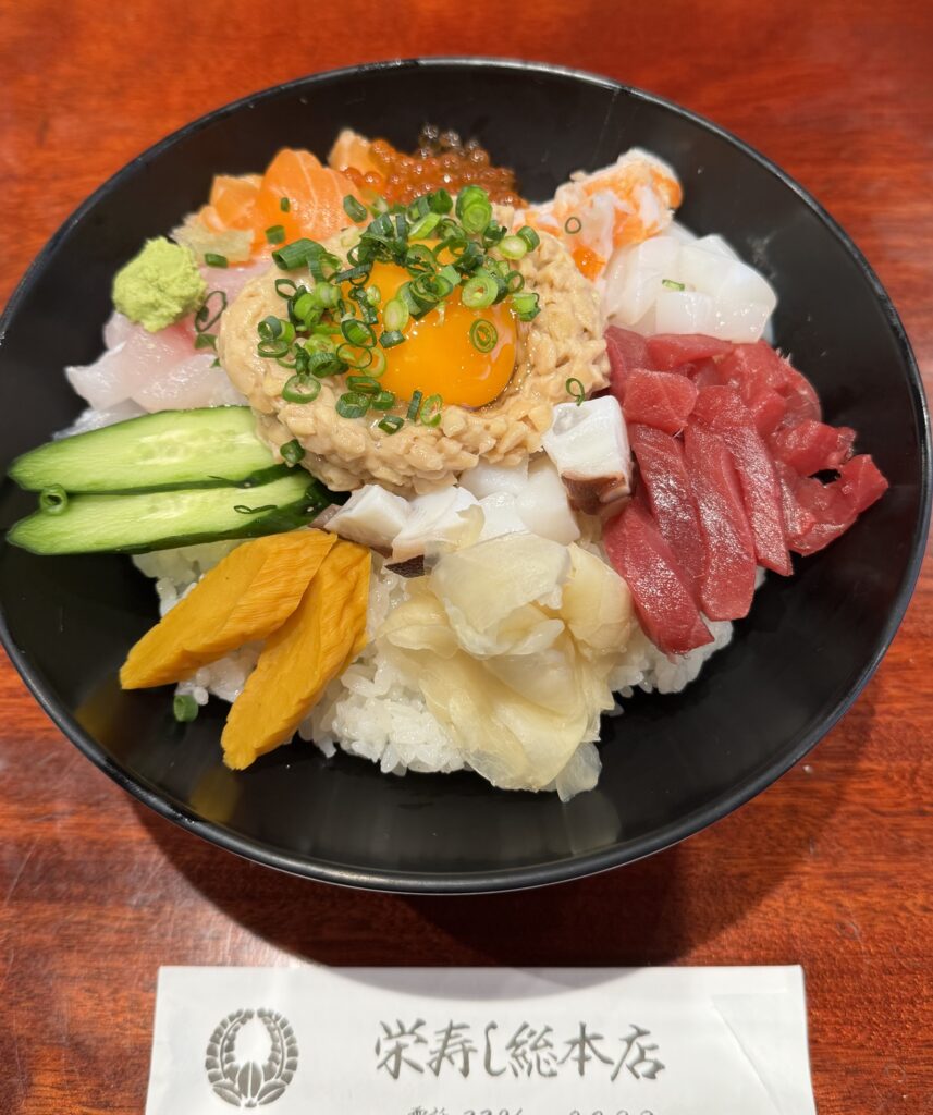 お寿司屋さんは、握り🍣を作っていると、端が出ますよね?そのお魚の端を細かくしてのせてできたお丼なのかな?